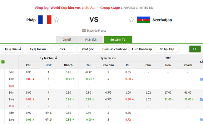 Tỷ kệ kèo Pháp vs Azerbaijan